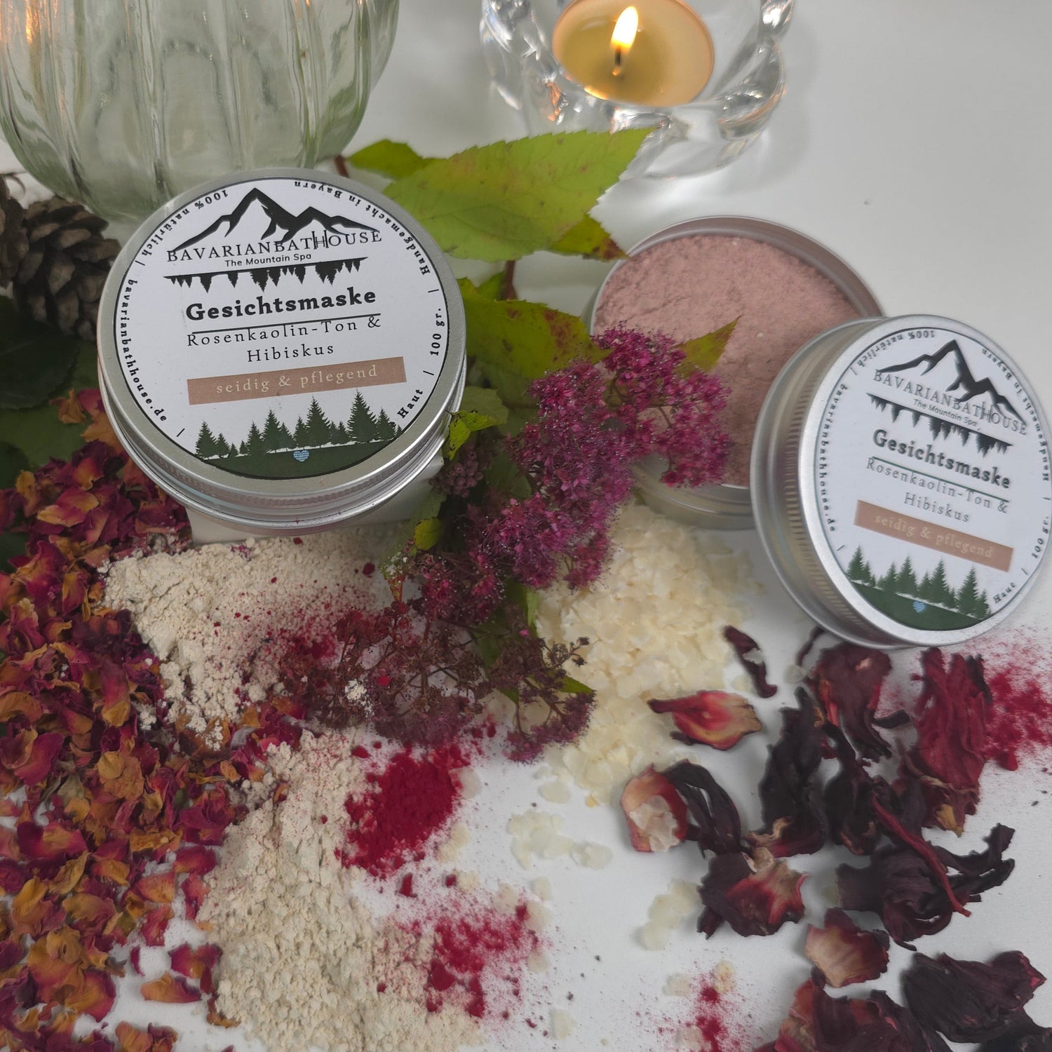 Rosen-Kaolin l Rosenblätter l Hibiskus I Reispulver I Seidenpulver I getrockneter Honig